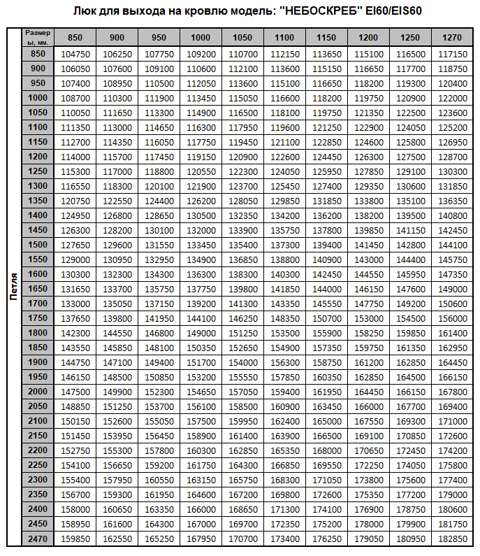Люки выхода на кровлю. Класс огнестойкости EI 60